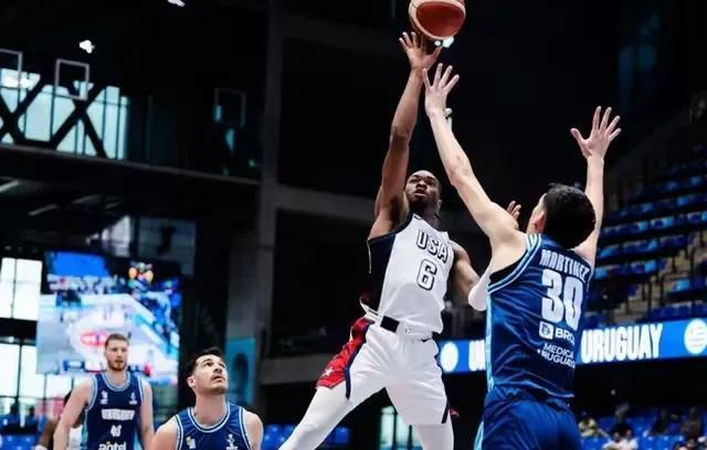 美国队对乌拉圭队,小组赛中两队交过手,美国85:86,被爆出惊天大冷,一度处在被淘汰的边缘。此战,乌拉圭果然有心理优势,上半场防的美国命中率非常低,让其单节分别只得到18分与20分。45:38,美国落后了7分。